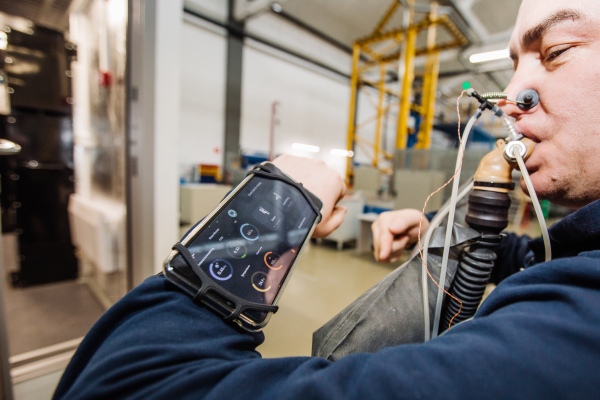 Development of a Mobile breath recorder of human breathing parameters in self-rescuers on chemically bound or compressed oxygen (SCSR) with the participation of test person.